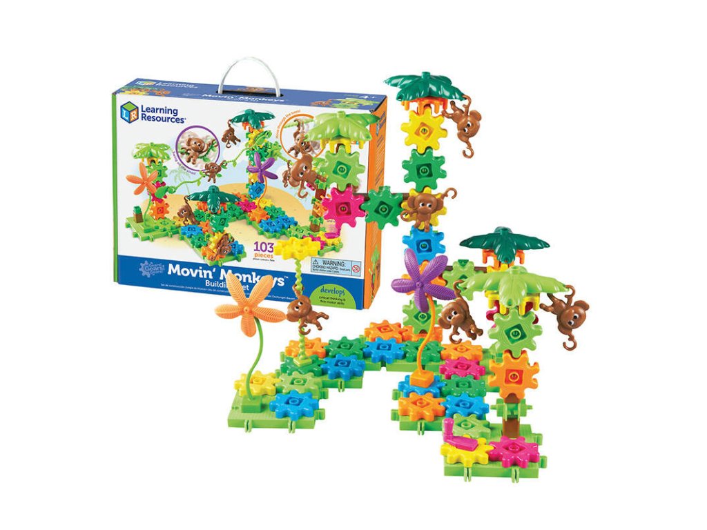 Dopřejte svému dítěti něco, co spojí zábavu a učení. Stavebnice Gears! Moving Monkeys Building Set obsahuje 103 plastových dílků různých tvarů - najdete zde mimo jiné ozubená kola, stavební základny, listy, liány a malé opičky. To vše vám umožní vytvořit barevnou džungli plnou spletitých cestiček, pohyblivých dílků a dalších věcí! Dítě si tak může rozvíjet kreativitu, logické myšlení a motoriku. Hračka je vhodná pro děti od 4 let.