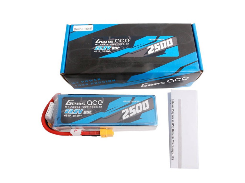 Gens ace 2500mAh 22,2V 80C 6S1P Lipo baterie s konektorem XT60.