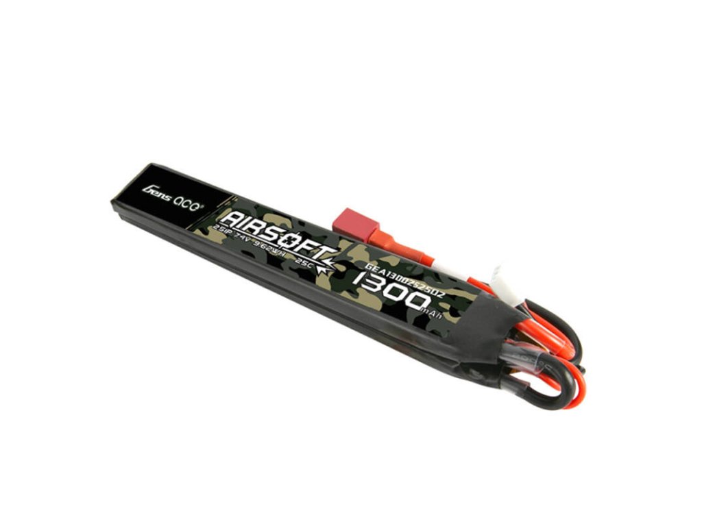 Gens ace 25C 1300mAh 2S1P 7.4V Saddle Airsoft Gun Lipo Battery with T Plug