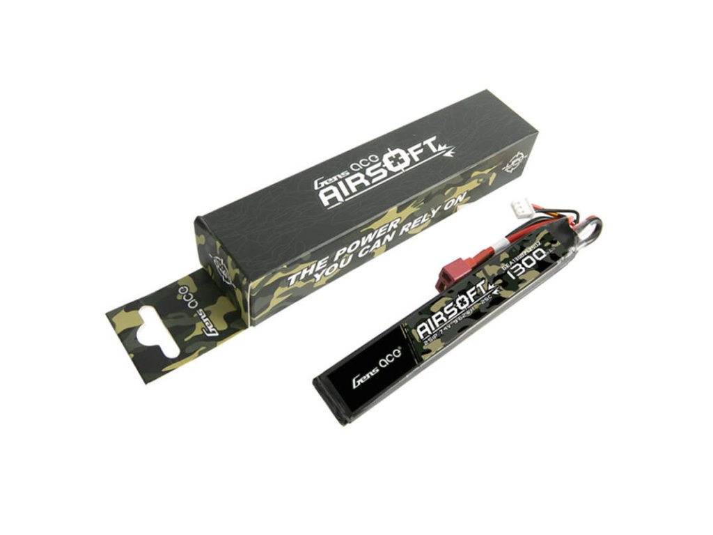 Lipo baterie Gens Ace 25C 1300mAh 2S1P 7,4V Saddle Airsoft Gun s T konektorem je určena speciálně pro napájení airsoftových zbraní. Je vhodná pro nárazníkové trubice a AEG, kde je prostor pro baterii omezený, aniž by došlo k obětování výkonu. Vhodná pro CRANE STOCK, AEG, M4 / M16 / HK416 atd.