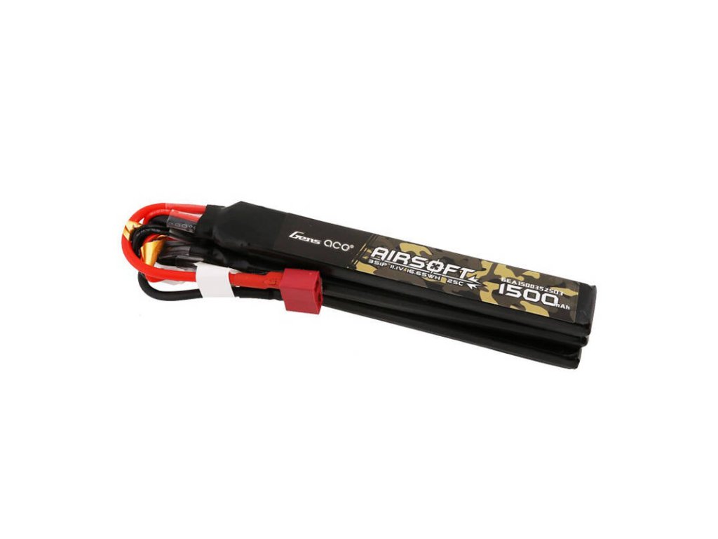 Lipo baterie Gens ace 25C 1500mAh 3S1P 11,1V Nunchuck 3X Airsoft Gun s T konektorem byla vytvořena pro napájení airsoftových zbraní. Je kompatibilní s celou řadou replik AEG, včetně oblíbených modelů, jako jsou M4, CM16, SCAR, AR15, LE STOCK, takže je ideální volbou pro všechny nadšence do airsoftových zbraní. S kapacitou 1500 mAh a napětím 11,1 V poskytuje dlouhotrvající energii pro delší hraní.