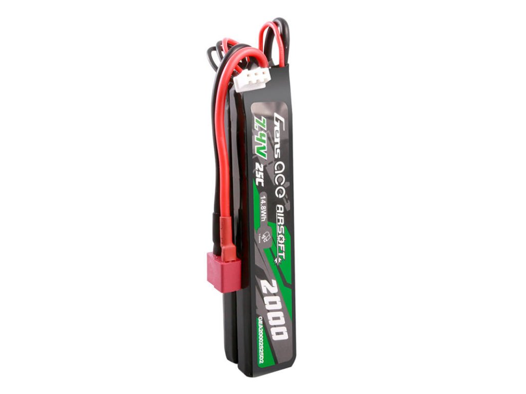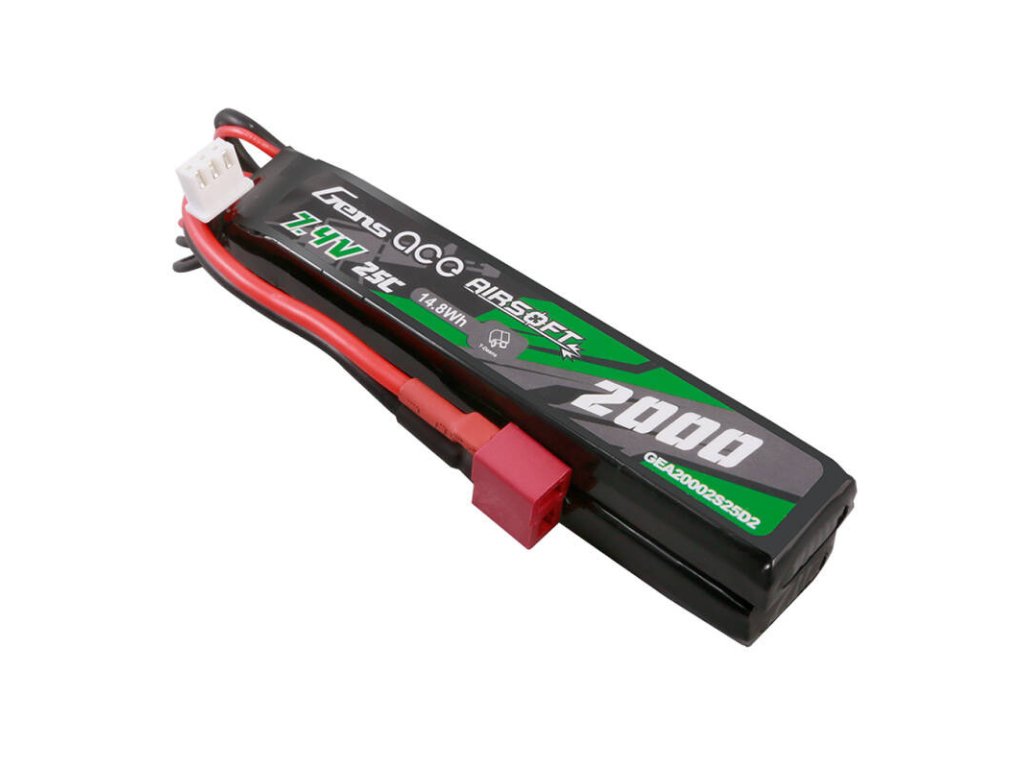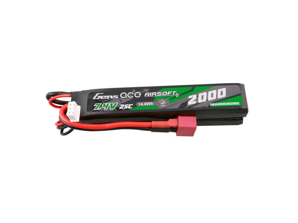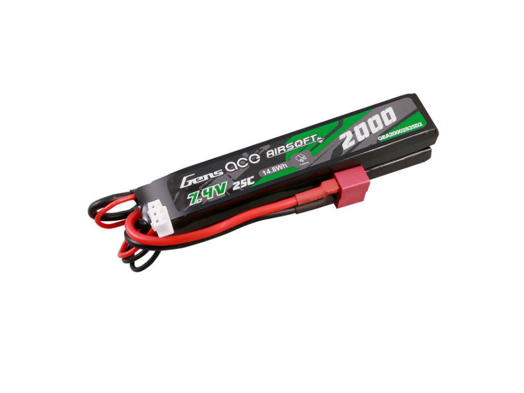 Gens Ace 25C 2000mAh 2S2P 7,4V Lipo baterie pro airsoftové zbraně s mini konektorem Deans(T)
