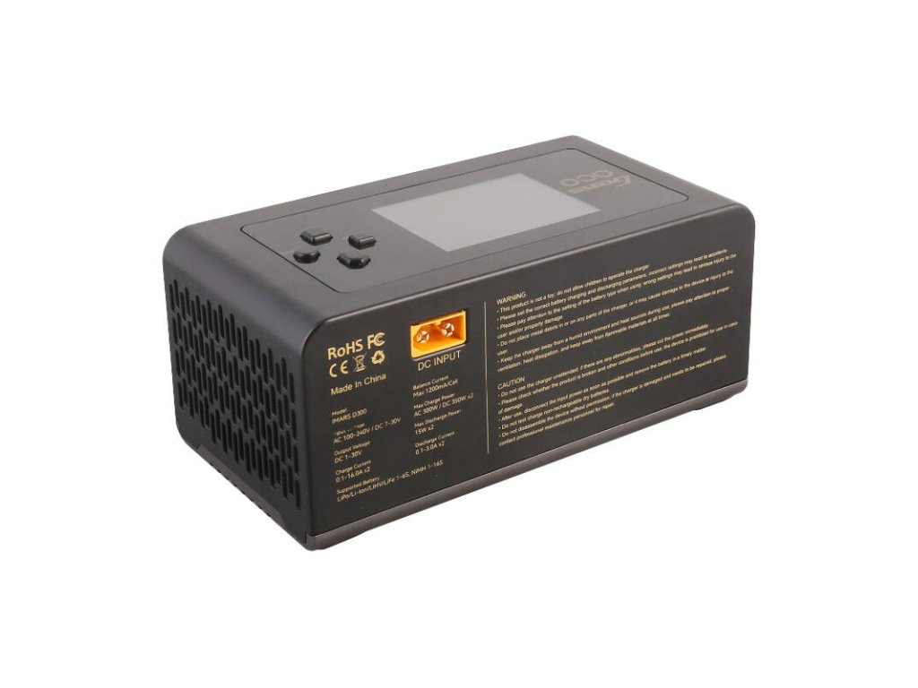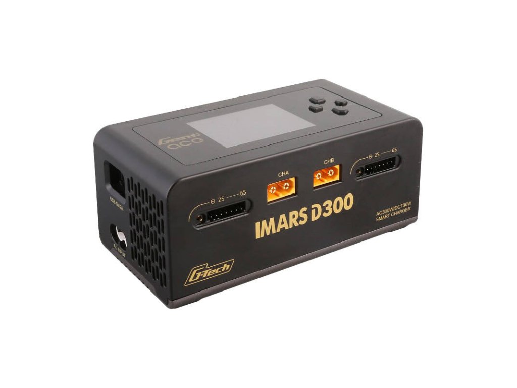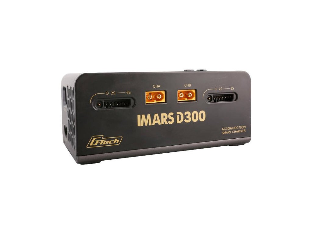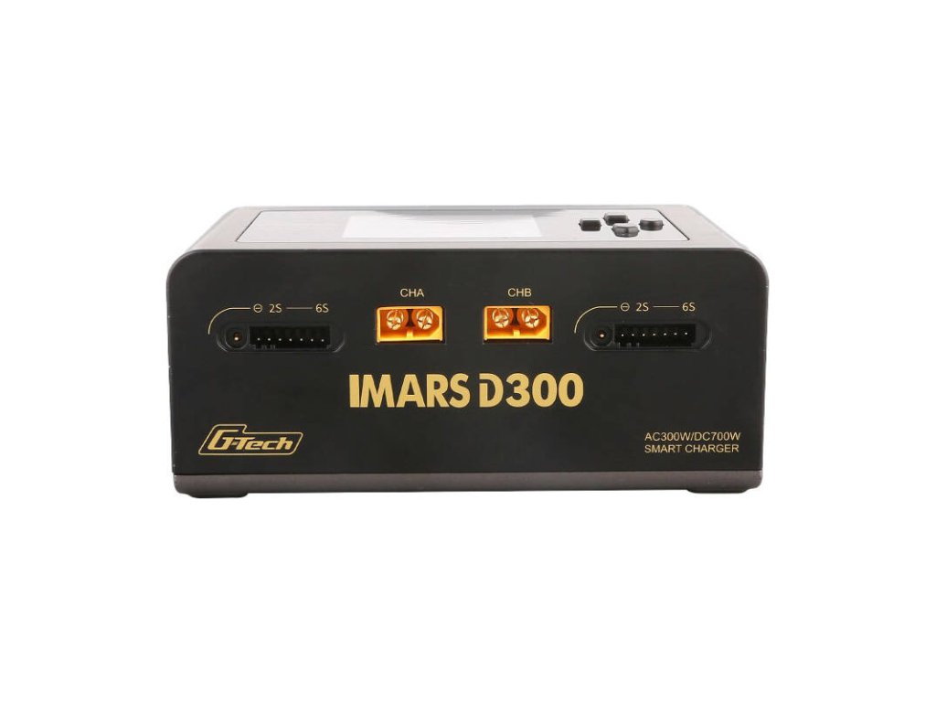 IMARS D300 je univerzální a inteligentní nabíječka určená pro inteligentní baterie G-Tech Eco. Je kompatibilní i s dalšími bateriemi. Automaticky identifikuje typ baterie G-Tech, napětí a nabíjecí proud, což usnadňuje proces nabíjení. Má sedm provozních režimů, včetně nabíjení, vybíjení, vyvažování a dalších. Díky dvoukanálovému přenosnému AC/DC nabíjení a velkému IPS displeji se snadno používá a ovládá. Nabízí vysoký nabíjecí výkon, pokročilé bezpečnostní funkce a podporu inteligentního nabíjení G-Tech.