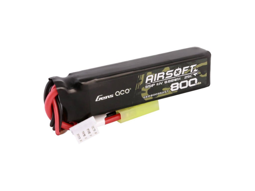 Gens Ace Lipo 800MAH 11.1V 25C 3S1P Airsoft Gun Lipo Battery with mini Tamiya Plug