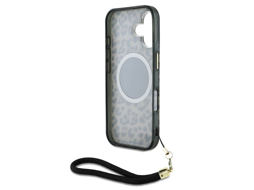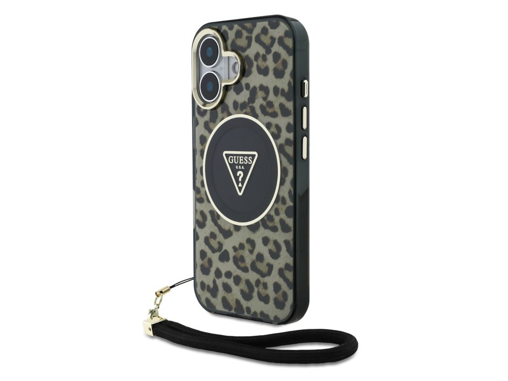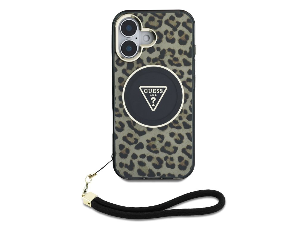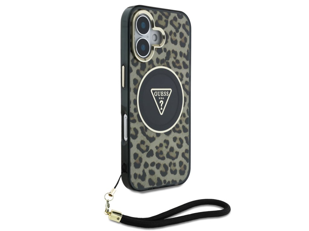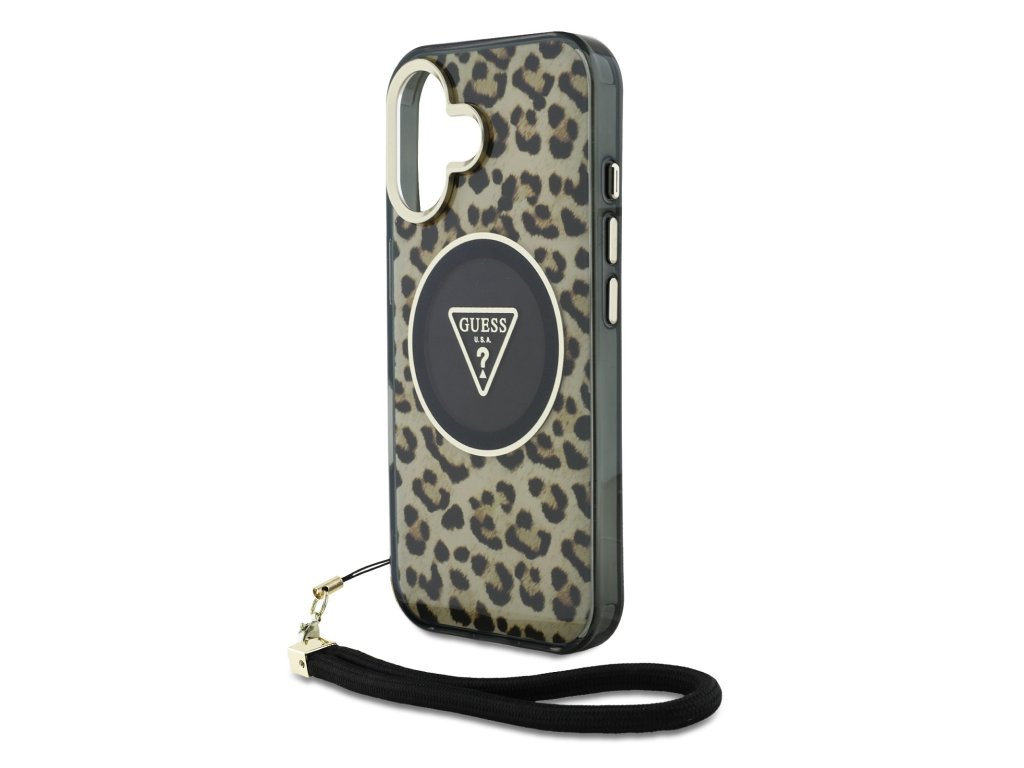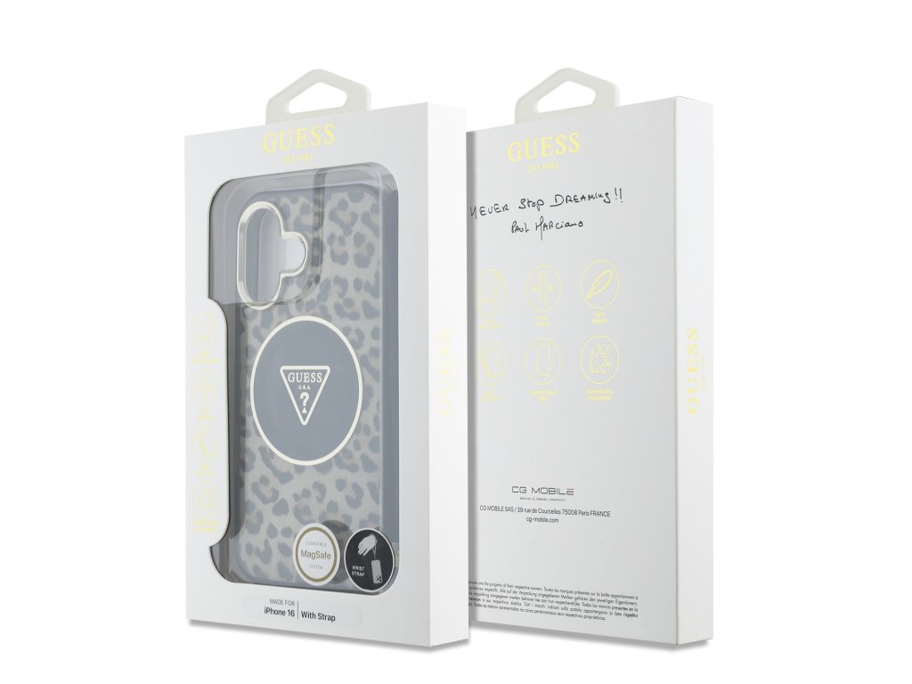 Guess IML Leopard Triangle Logo Strap MagSafe Zadní Kryt pro iPhone 16 Brown