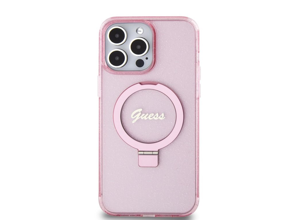 Guess IML Ring Stand Glitter MagSafe Zadní Kryt pro iPhone 15 Pro Max Pink