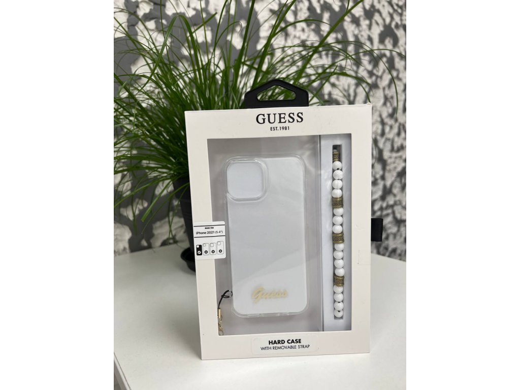 Guess PC Script and White Pearls Zadní Kryt pro iPhone 13 mini Transparent