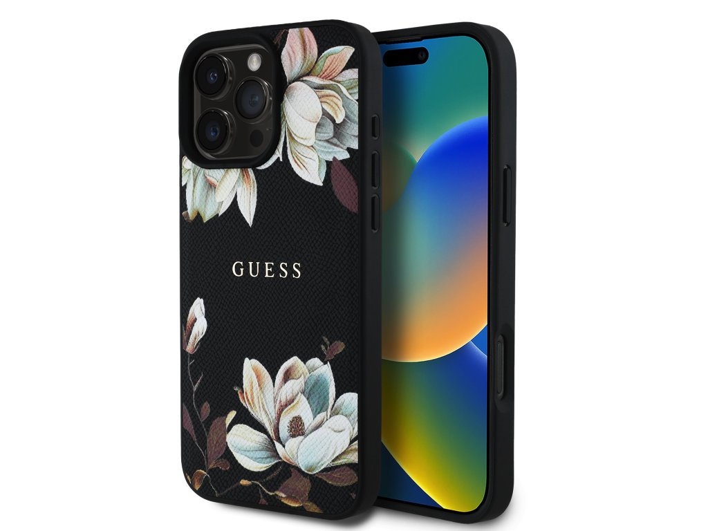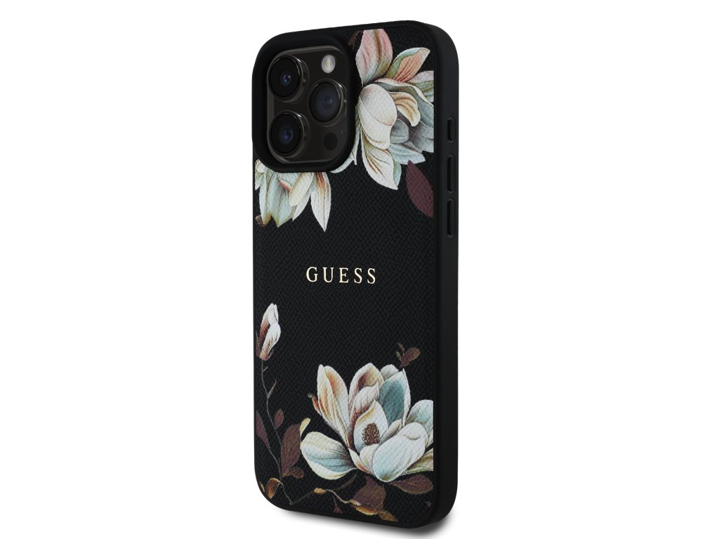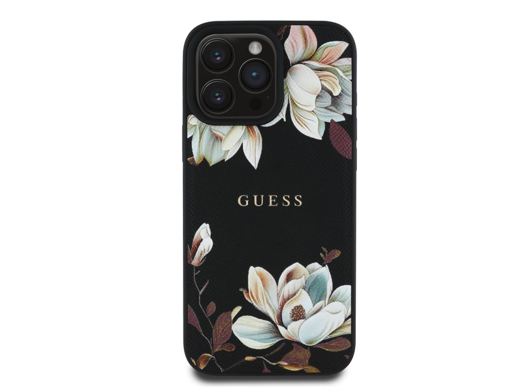 Prémiový zadní kryt Guess PU Grained Magnolia Magafe se vyznačuje elegantním, sofistikovaným designem s květinovým motivem.