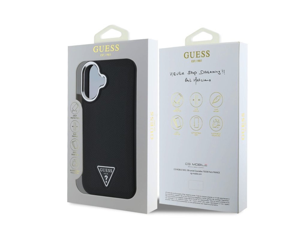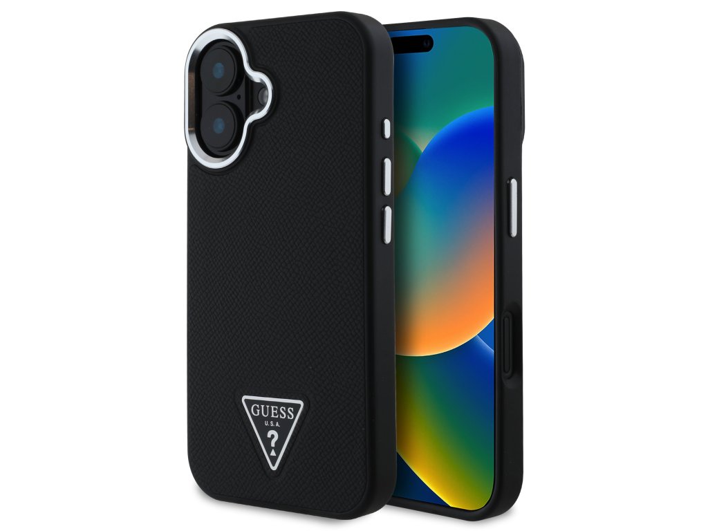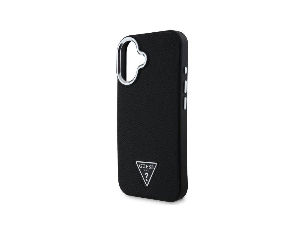 Guess PU Grained Triangle Logo kryt pro iPhone 16 Černá