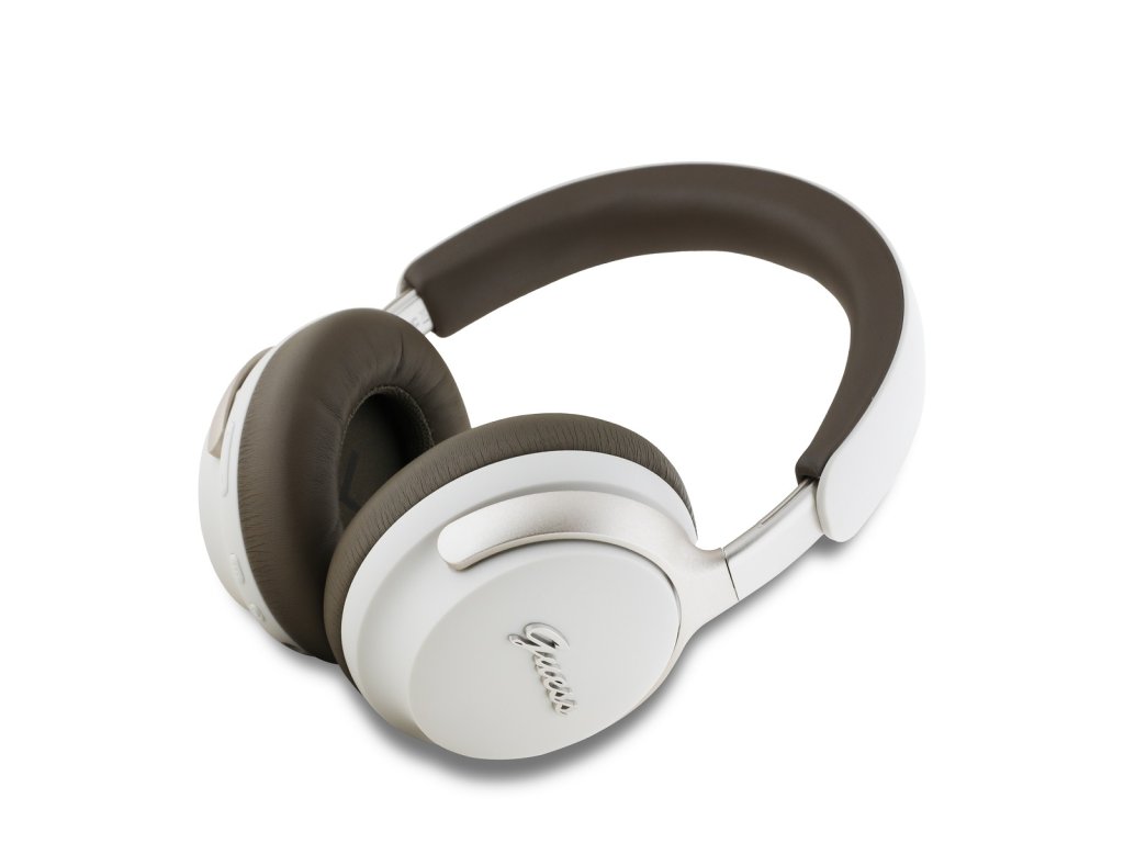 Guess PU Leather Script Logo ANC/ENC mají na vnější straně výrazné logo ve stříbrné barvě. Sluchátka vypadají robustně a elegantně, s minimalistickým designem bez zbytečných ozdob. Celkový design je moderní a stylový, vhodný pro každodenní použití.