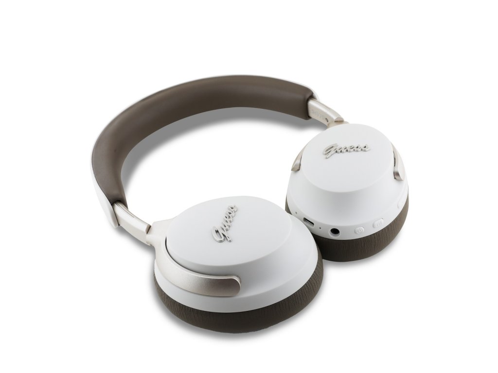 Guess PU Leather Script Logo ANC/ENC Bezdrátová Sluchátka Beige
