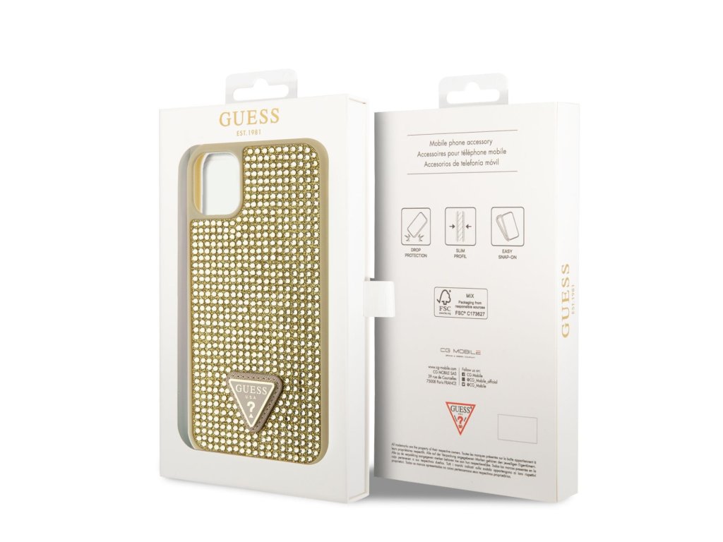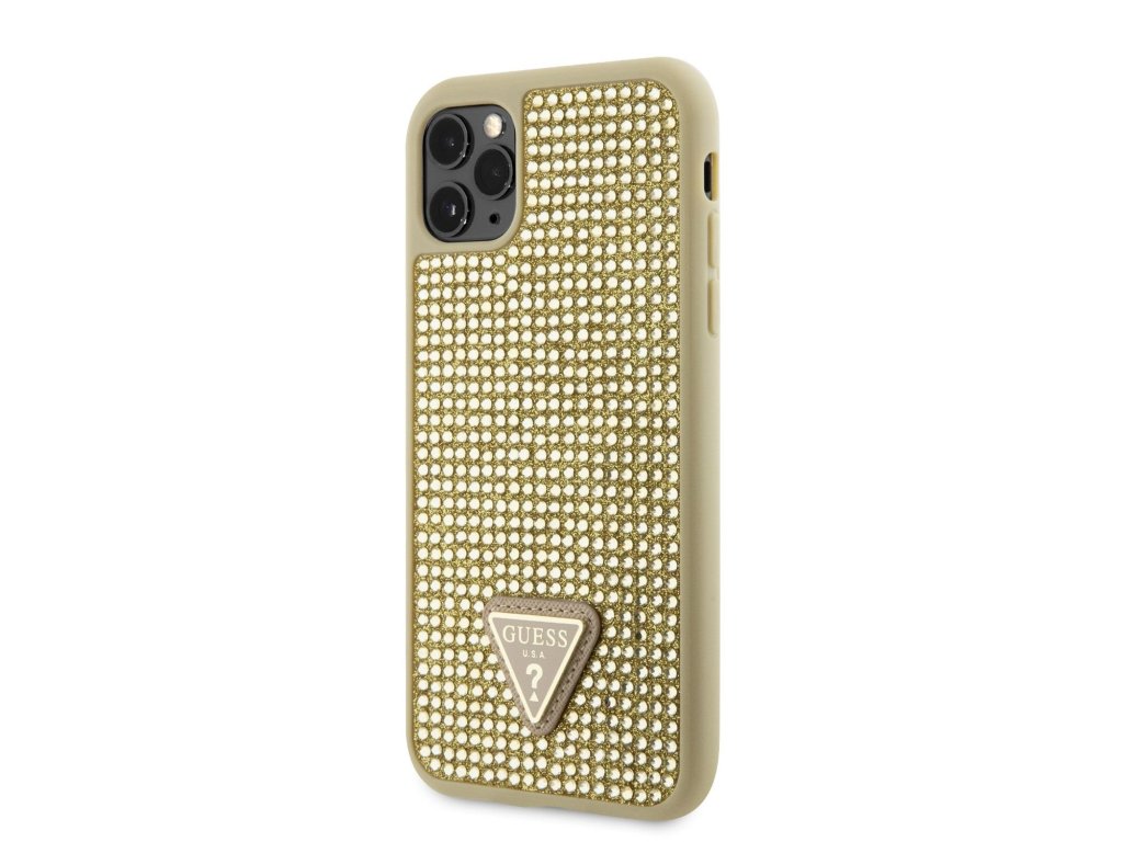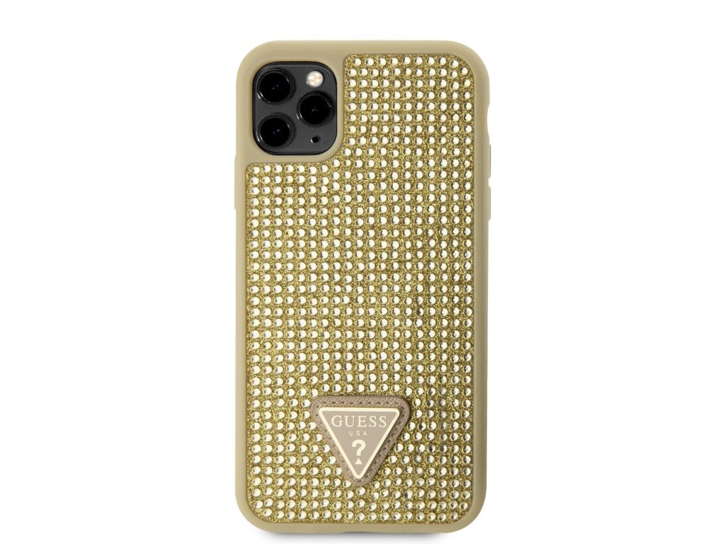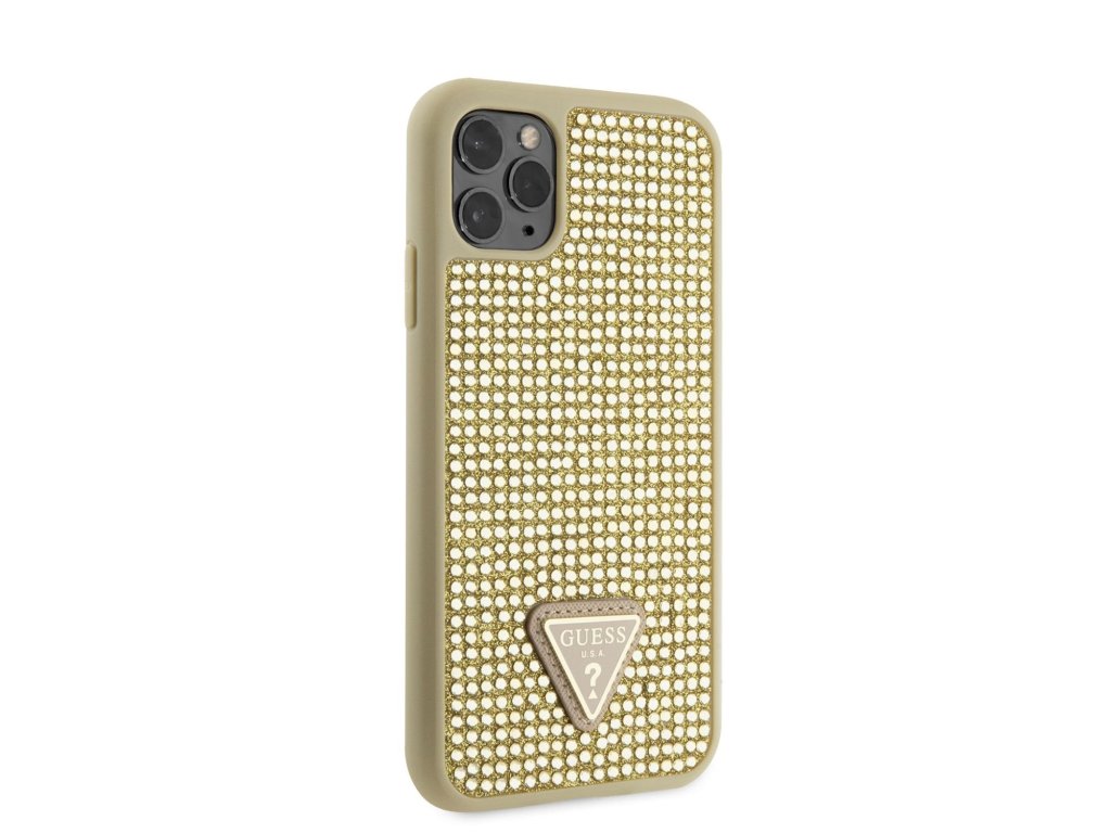 Guess Rhinestones Triangle Metal Logo Kryt pro iPhone 11 Pro Zlatá