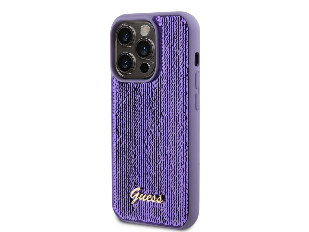 Guess Sequin Script Logo kryt pro iPhone 14 Pro Max Fialová