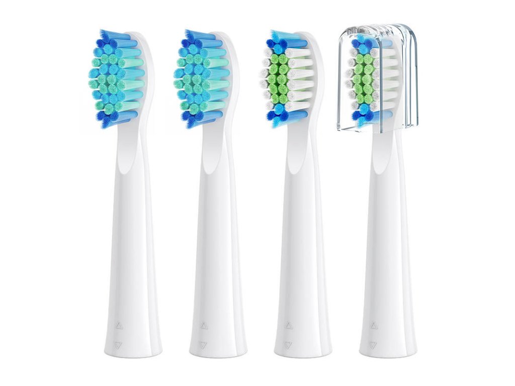 Dark blue bristles on the toothbrush head fade as they wear out - when they fade completely, it's time to replace it with a new one. The specially shaped bristle pattern conforms better to the shape of your teeth, reaching into the gaps between them. These replacement heads are designed for the Bitvae D2 toothbrush. You'll receive four pieces in the set. Note: the color of the bristles may vary.