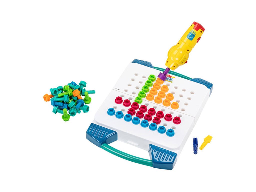 Společnost Learning Resources nabízí kreativní stavebnici určenou k rozvoji jemné motoriky a kreativity u dětí od 3 let. Díky přenosnému provedení praktického kufříku si mohou batolata vzít všechny dílky kamkoli s sebou. Poznámka: K napájení vrtačky/vrtáku jsou zapotřebí 3 baterie AA, které je nutné zakoupit zvlášť.