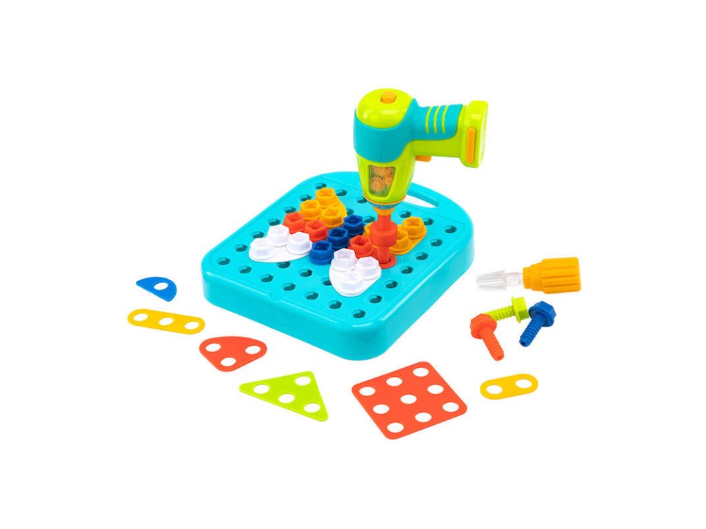 Se stavebnicí Learning Resources si každé dítě starší 3 let může vyzkoušet a zdokonalit své konstrukční dovednosti. Sada obsahuje desku s aktivitami, vrtačku, šroubovák, stavební destičky a šroubky - to vše pomáhá rozvíjet dětskou motoriku. Poznámka: K napájení vrtačky jsou zapotřebí 2 baterie AA, které je nutné zakoupit zvlášť.