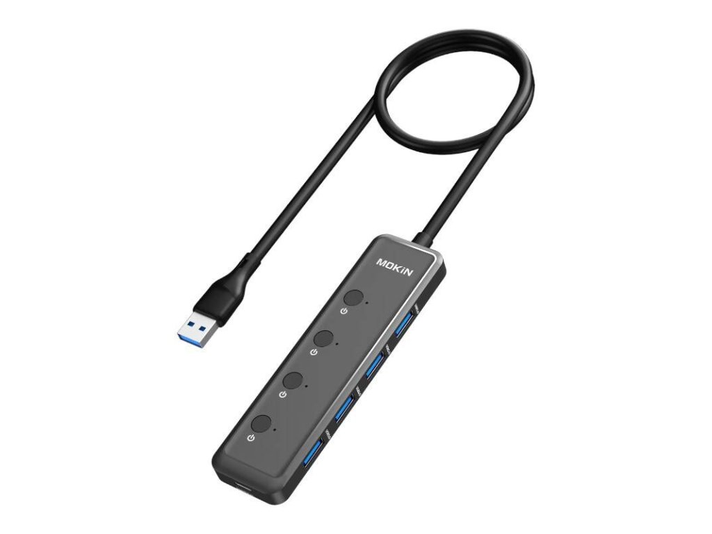 HUB 5in1 MOKiN USB-A3.0 to 4xUSB-A + 1xUSB-C DC (black)