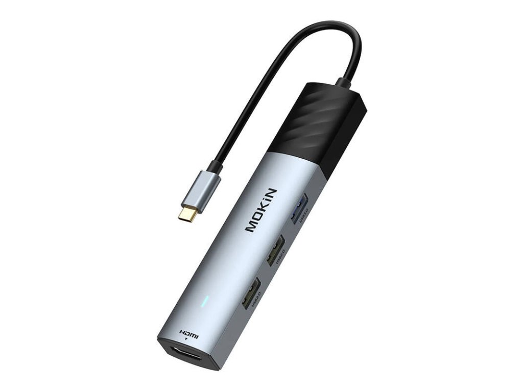 Want to increase your computer's capabilities? Stock up on MOKiN's multifunctional 5-in-1 hub, which offers an HDMI port, a USB-C PD port, two USB-A 2.0 ports and a USB-A 3.0 port. The device allows you to transfer files at speeds of up to 5 Gbps and supports high-definition video display. It is also distinguished by its portable design and compatibility with most popular hardware and operating systems.