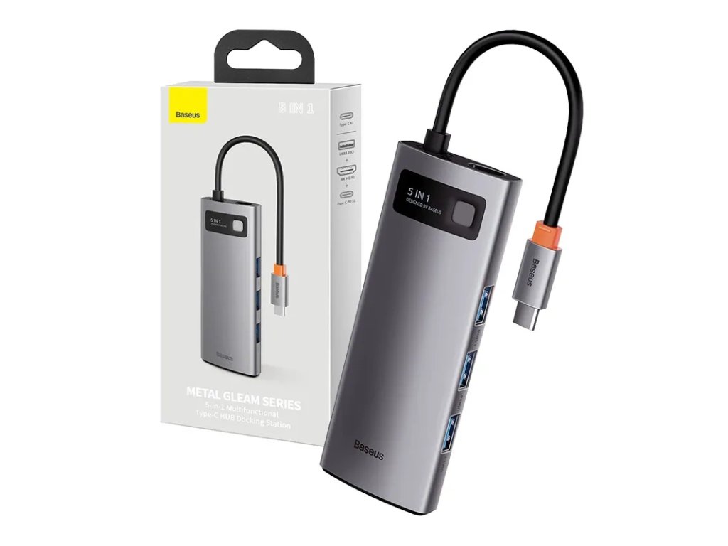 Hub 5v1 Baseus Metal Gleam Series, USB-C na 3x USB 3.0 HDMI USB-C PD
