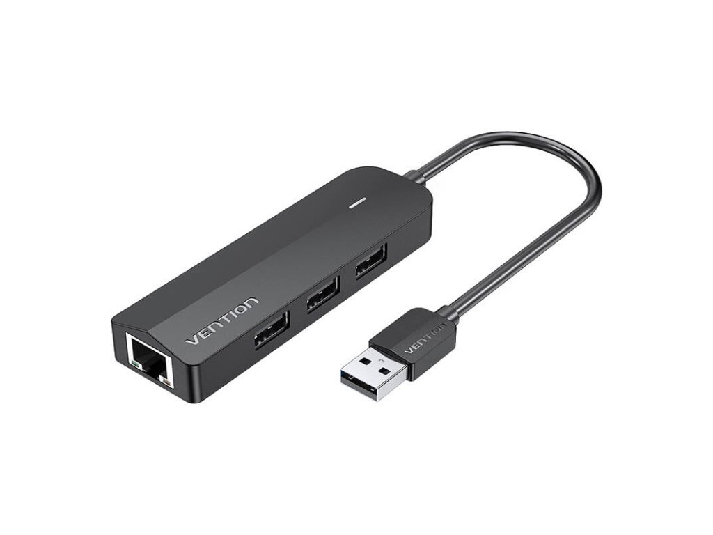 Hub USB 2.0 3-Port with Ethernet Adapter 100Mbps Vention CHPBB 0.15m, Black
