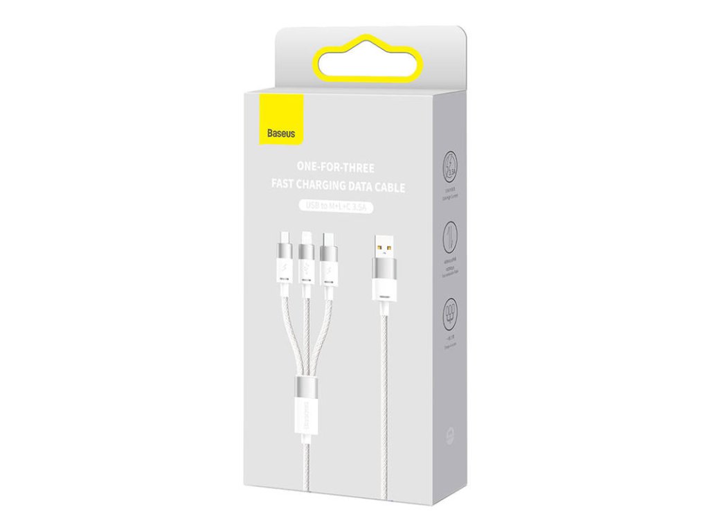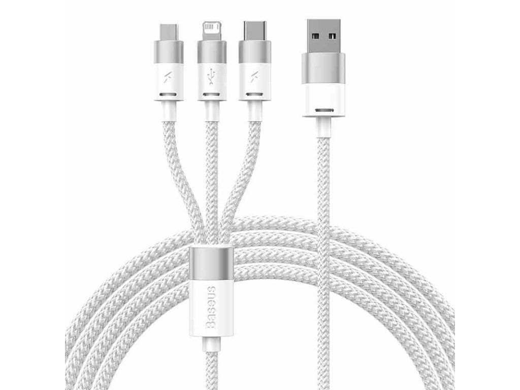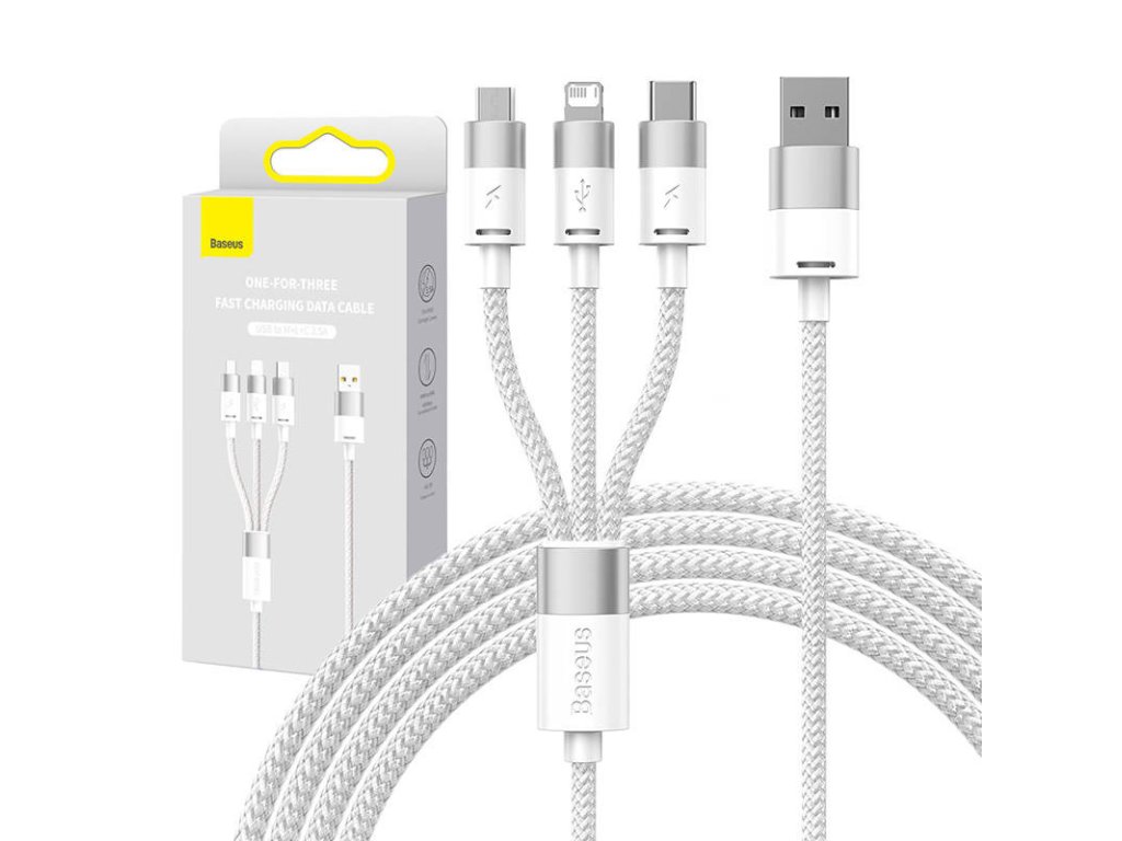 Kabel 3v1 USB Baseus řady StarSpeed, USB-C + micro + Lightning 3,5A, 1,2 m (bílý)