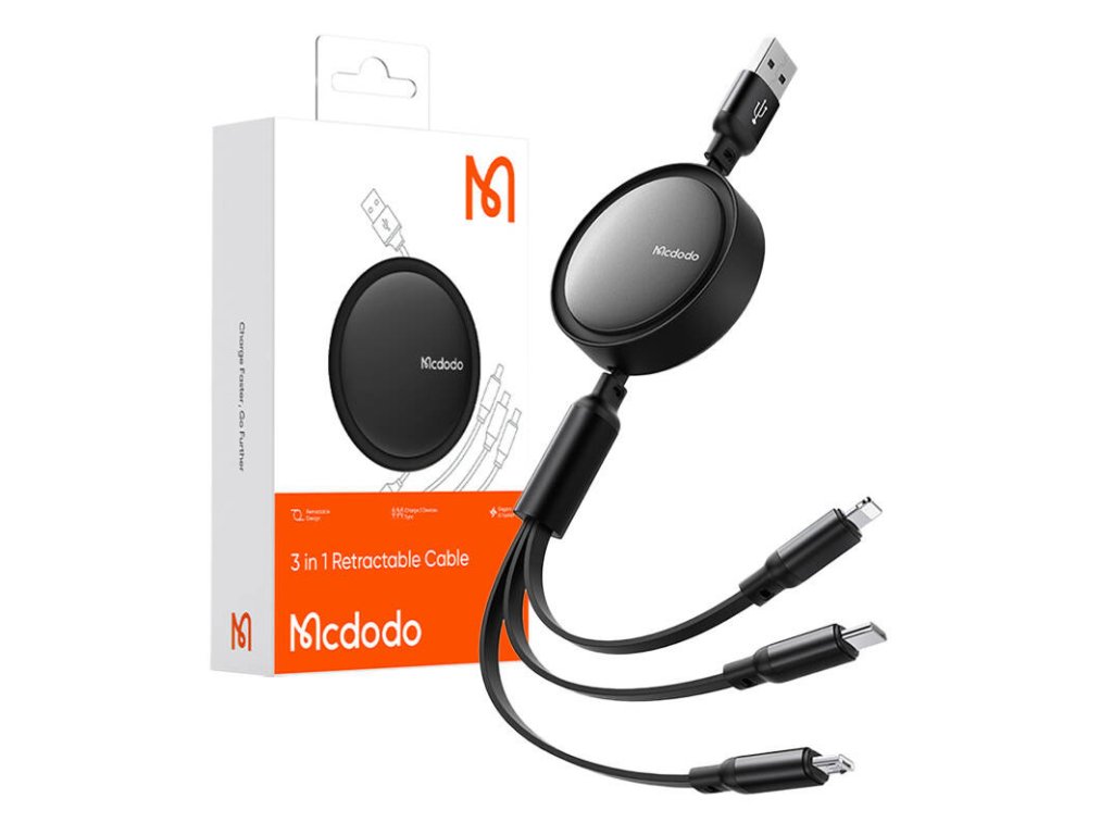 Nabíjejte 3 zařízení současně a užívejte si pohodlí. Kabel 3 v 1 Mcdodo CA-7256 je vybaven 3 konektory (USB-C, Lightning, micro USB), takže je kompatibilní s většinou zařízení dostupných na trhu - nemusíte používat další kabely. Můžete si také nastavit jeho délku v rozmezí 35-120 cm. Výrobek je velmi lehký a přenosný - můžete ho mít vždy po ruce.