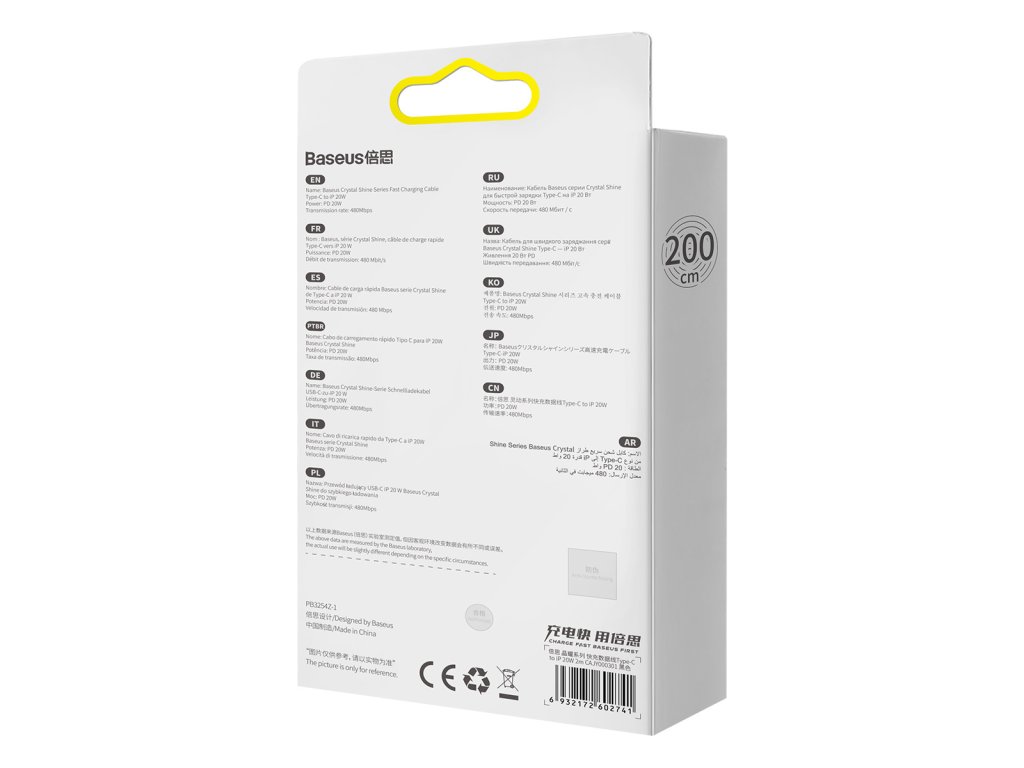 Kabel Baseus Crystal Shine z USB-C na Lightning, 20W, PD, 2m (černý)