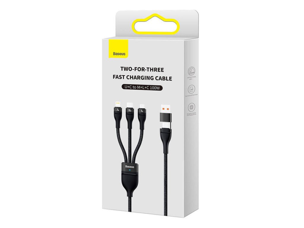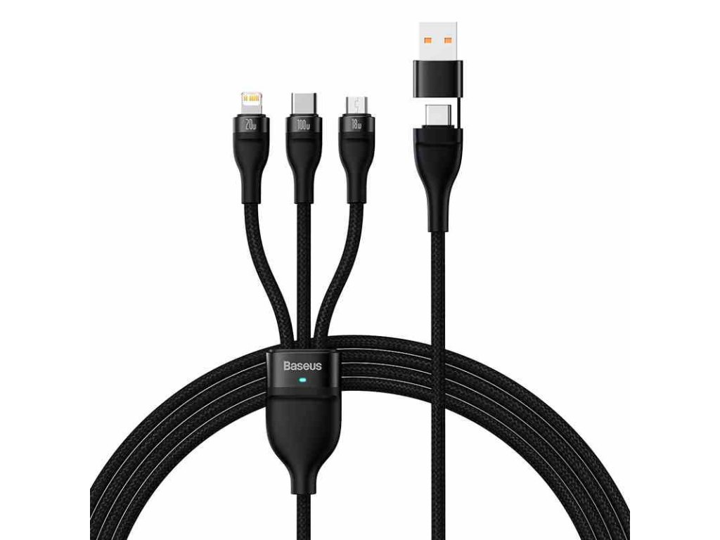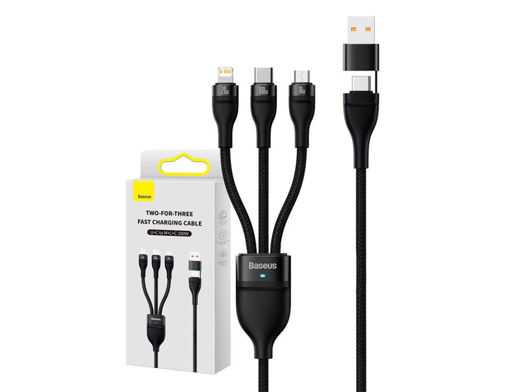 Kabel USB 3v1 Baseus Flash Series 2, USB-C + micro USB + Lightning, 100 W, 1,2 m (černý)