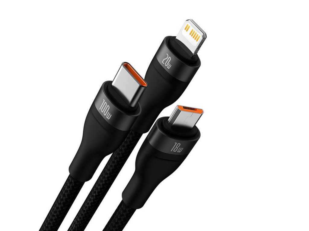 Kabel USB 3v1 Baseus Flash Series 2, USB-C + micro USB + Lightning, 100 W, 1,5 m (černý)