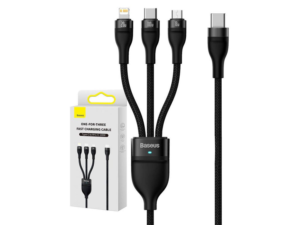 Kabel USB 3v1 Baseus Flash Series 2, USB-C + micro USB + Lightning, 100 W, 1,5 m (černá)