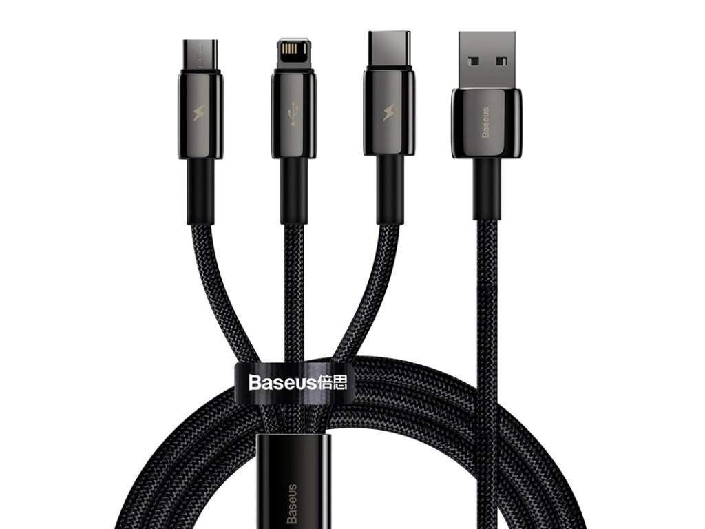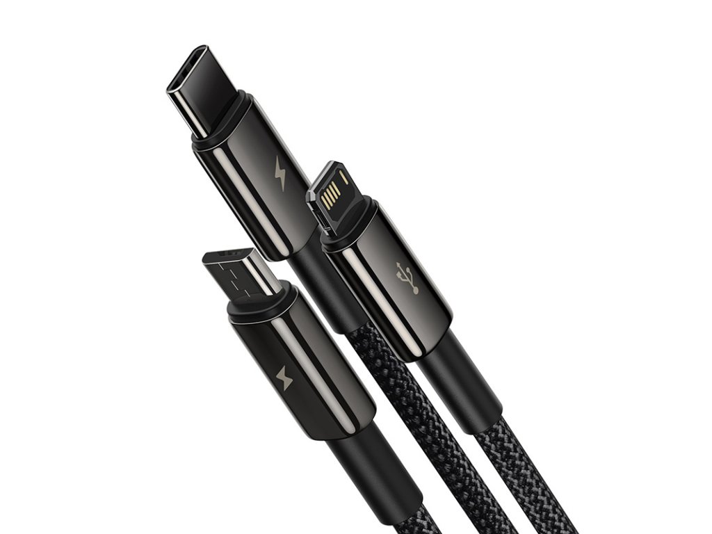 Kabel USB 3v1 Baseus Tungsten Gold, USB na micro USB / USB-C / Lightning, 3,5 A, 1,5 m (černý)