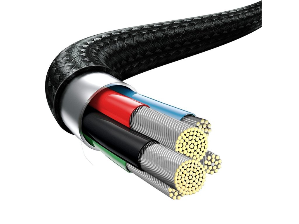 Výrobek je vyroben z vysoce kvalitních materiálů, které mu zajišťují neuvěřitelnou odolnost. Pět měděných vodičů zaručuje rychlé nabíjení a spolehlivý přenos dat. Opletený, nylonový plášť je mimořádně odolný. Díky němu se kabel vyznačuje pružností a odolností proti ohýbání, poškrábání a dokonce i zlomení. Skladování a přepravu výrobku usnadňuje speciální suchý zip - díky němu zapomenete na nepříjemné zamotávání a nepořádek.
