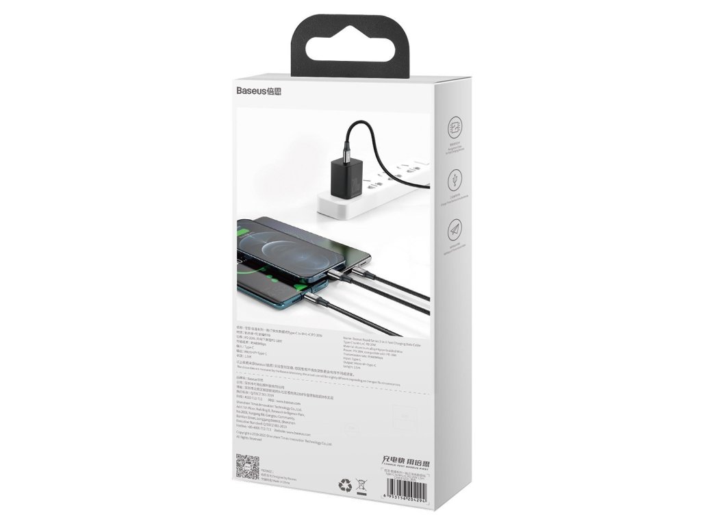 Kabel USB-C řady Baseus Rapid 3 v 1 pro M L T 20W 1,5 m černý