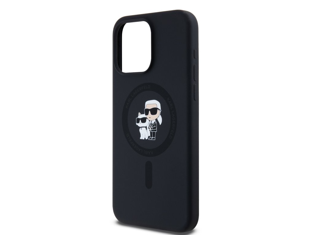 Karl Lagerfeld Liquid Silicone Karl and Choupette Magsafe Zadní Kryt pro iPhone 15 Pro Max Black