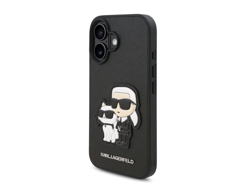 Karl Lagerfeld PU Saffiano Karl and Choupette Zadní Kryt pro iPhone 16 Plus Black