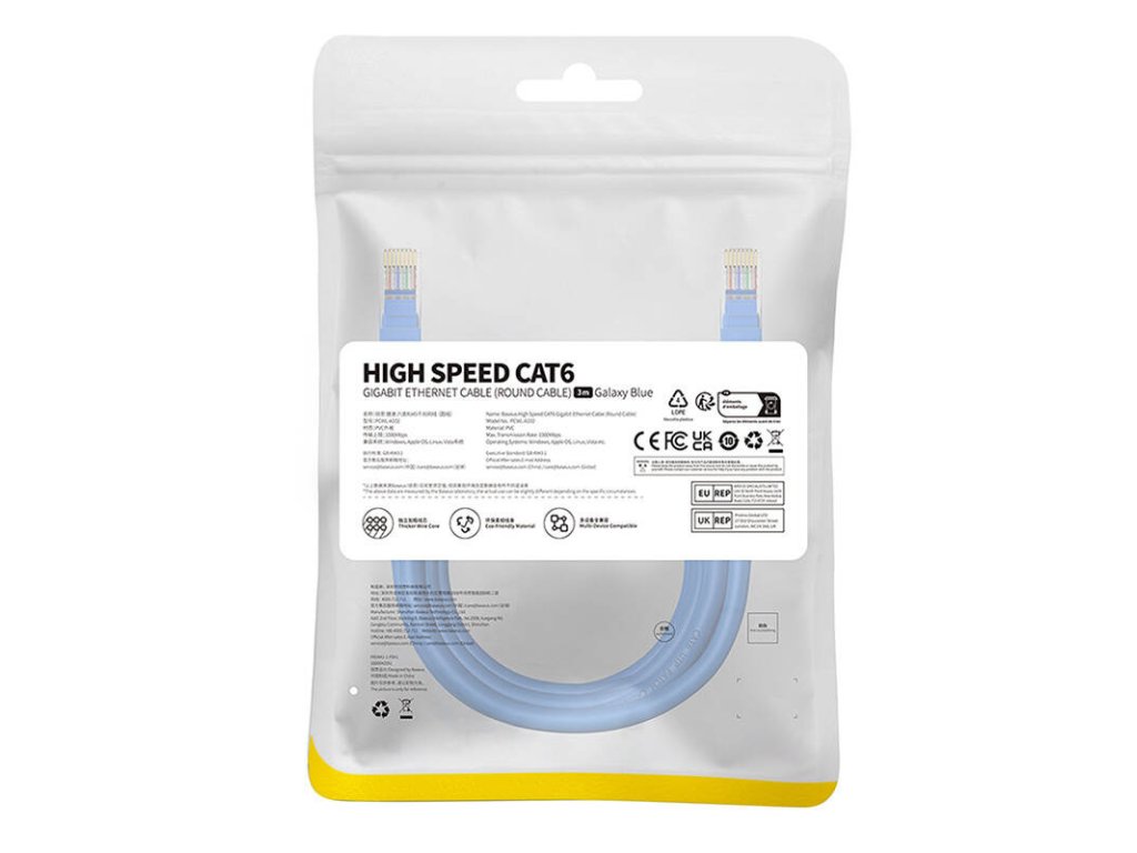 Kulatý kabel Baseus Ethernet RJ45, Cat.6, 3 m (modrý)