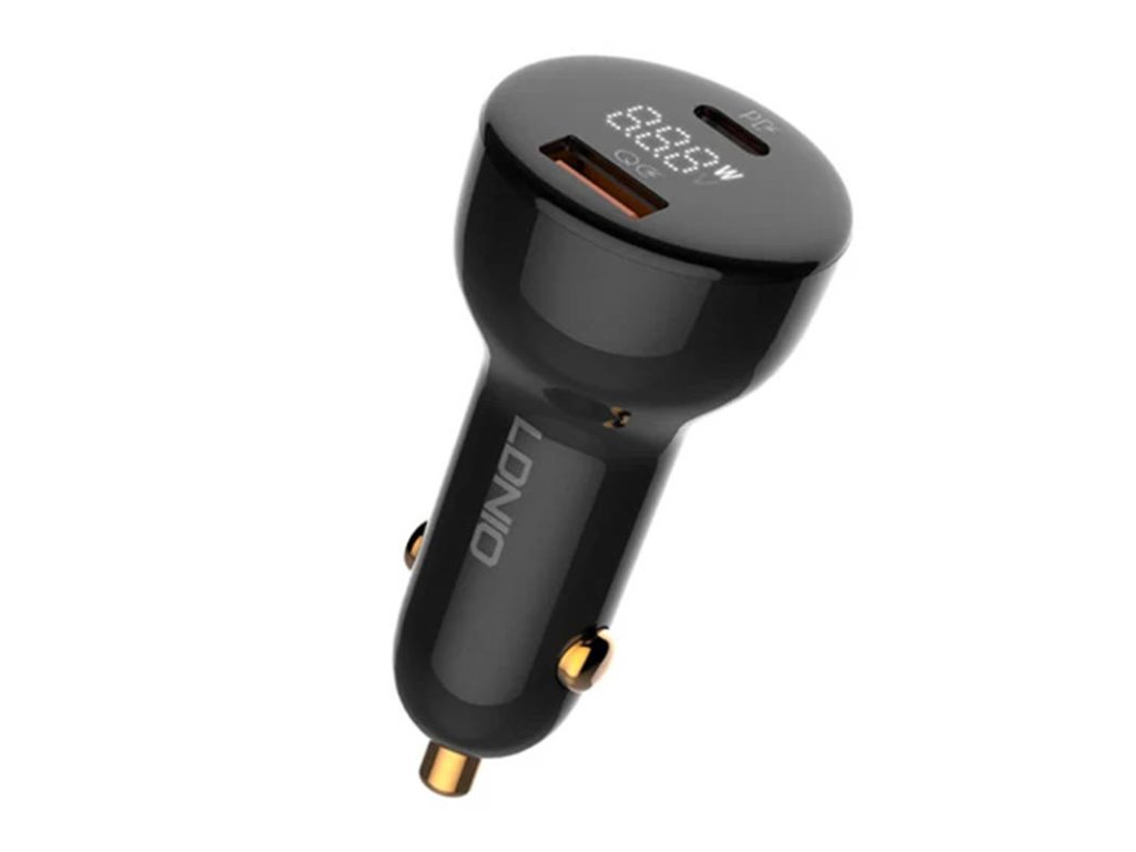 LDNIO C101 Nabíječka do auta, USB + USB-C, 100 W + kabel USB-C na Lightning (černá)