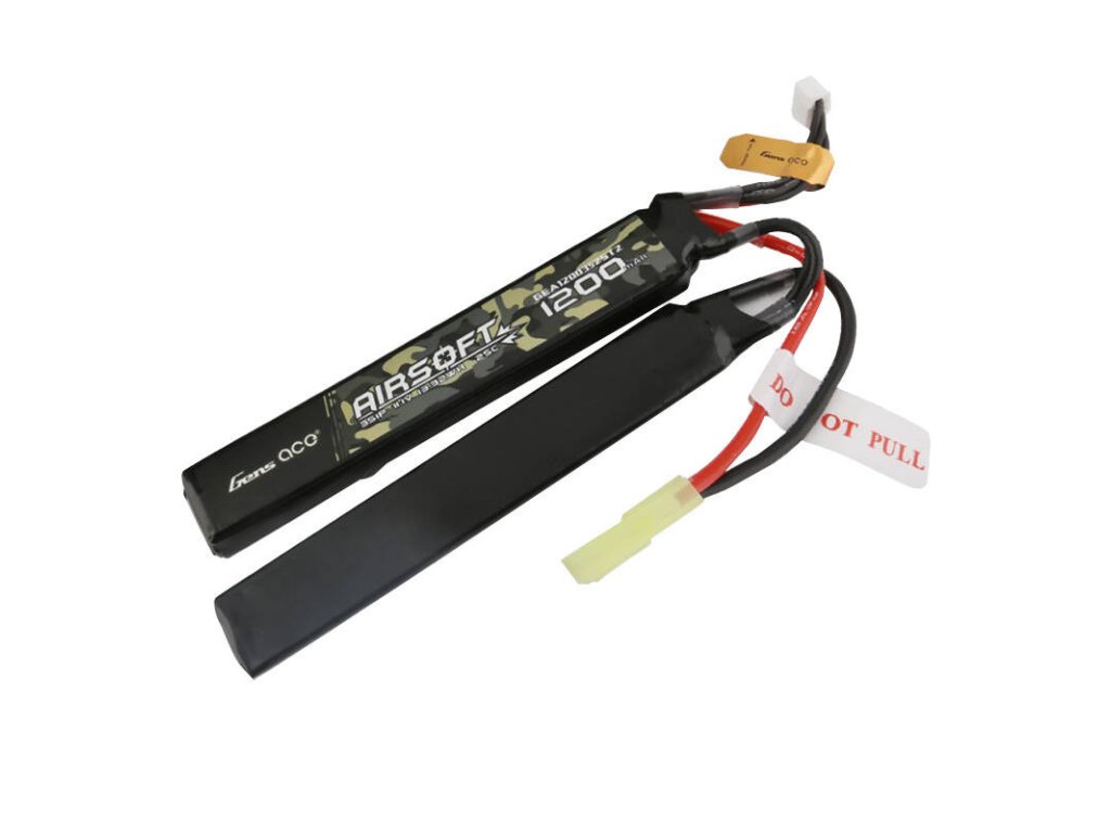 LiPo baterie GENS ACE SADDLE AIRSOFT GUN má kapacitu 1200mAh a je vybavena konektorem Mini-Tamiya. Je speciálně navržena pro napájení AirSoft pistolí bez ztráty výkonu. Vhodný pro nárazníkové trubice a AEG, kde je prostor pro baterii omezený. Dobře funguje se zásobníky CRANE a hodí se pro M4, M16, HK416 a další.