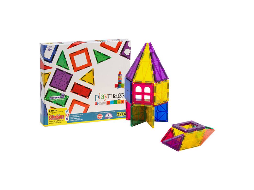 Sada Playmags se skládá z 32 základních dílků a 6 doplňkových dílků různých tvarů a barev, které inspirují k tvoření a stavění. Děti tak mohou vytvářet složité stavby a experimentovat s různým uspořádáním.