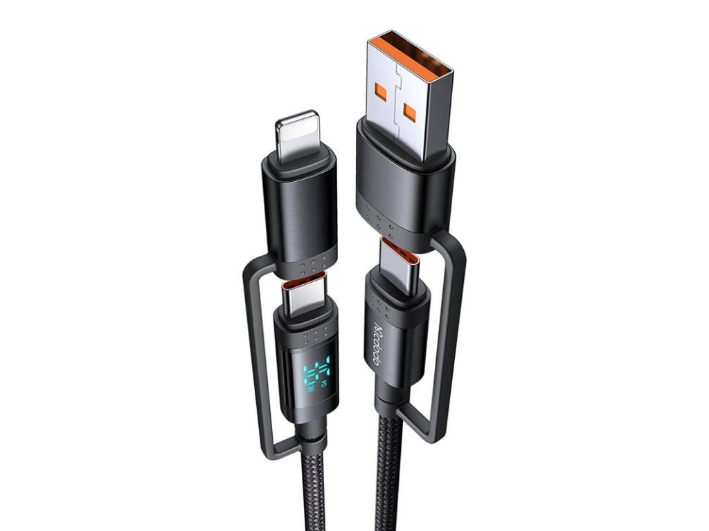 The McDodo 4-in-1 CA-1990 cable is an innovative solution that combines versatility with high performance. Thanks to its unique 4-in-1 design, combining USB-C, USB-A and Lightning terminals, the cable allows you to connect to a wide range of devices, including laptops, smartphones, tablets and iOS and Android compatible accessories.