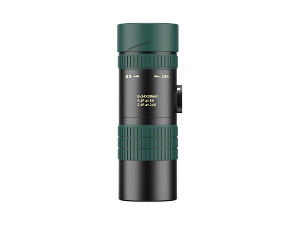 Monokulární objektiv umožňuje nastavení zoomu v rozsahu 8x až 24x. Díky této funkci mohou uživatelé zvětšovat vzdálené objekty s neuvěřitelnou přesností a současně si užívat jasný a ostrý obraz. Je to dokonalý nástroj pro jedince, kteří chtějí pozorovat přírodu, koncerty nebo sportovní události, kde jsou detaily klíčem k plnému zážitku. Změna přiblížení je velmi snadná a provádí se pomocí otočného kroužku.