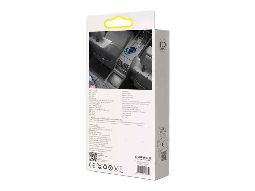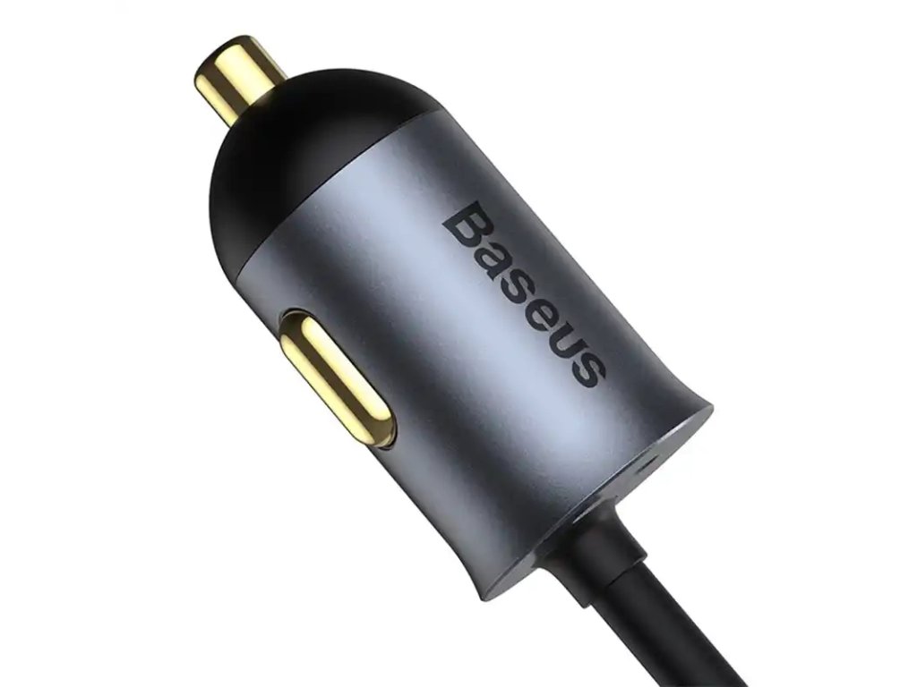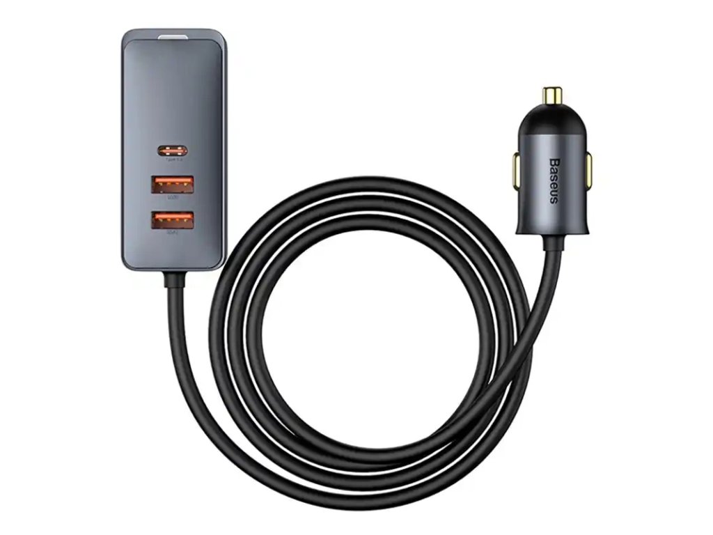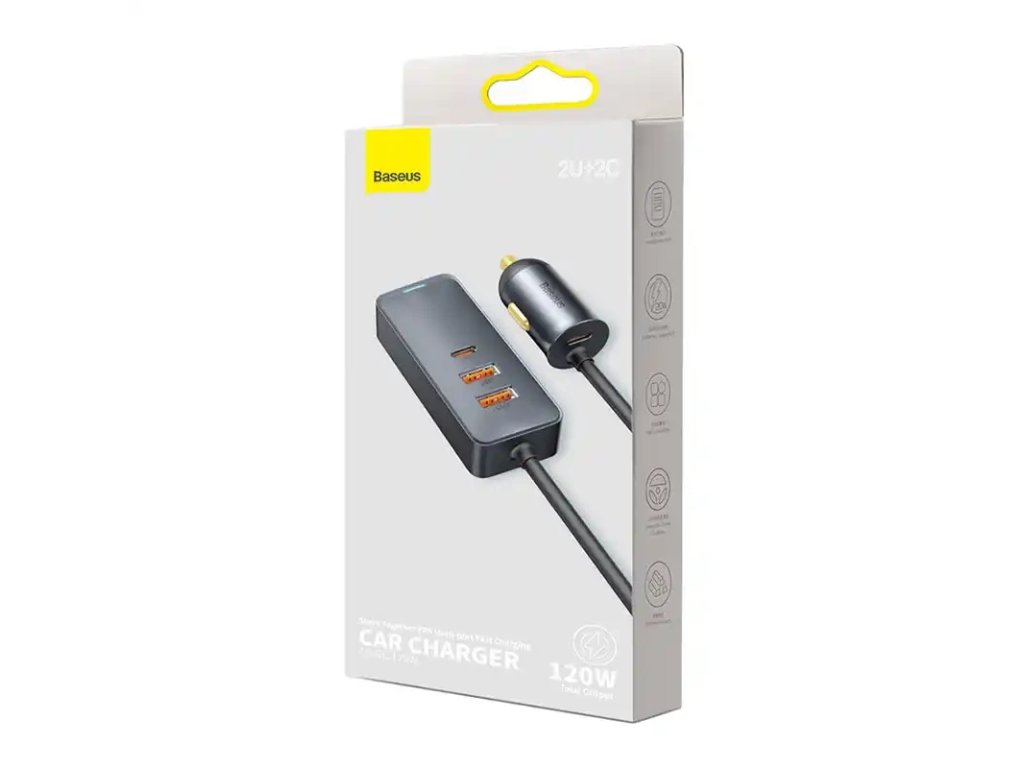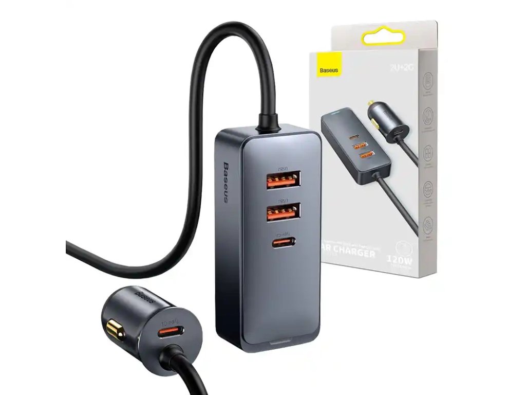 Nabíječka do auta Baseus Share Together s prodlužovacím kabelem, 2x USB, 2x USB-C, 120 W (šedá)
