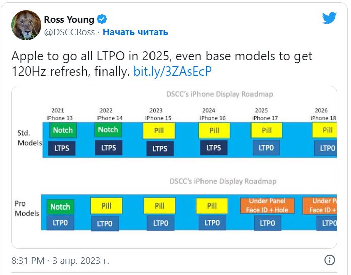 Mimochodem, Ross Young také uvedl, že v blízké budoucnosti Apple neplánuje přejít u základních modelů iPhonů na matrice LTPO. Nové produkty dostanou takové obrazovky s podporou 120 Hz až v roce 2025.