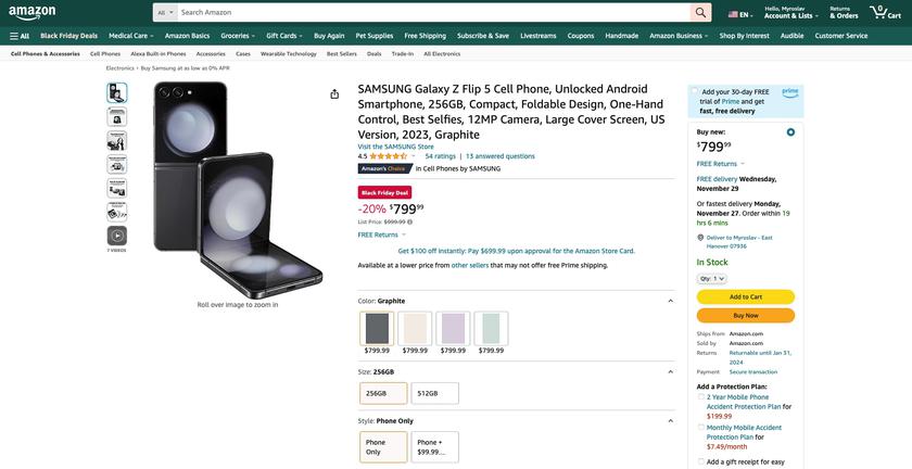 Samsung Galaxy Flip 5, 128 GB - 799,99 USD 999,99 USD, -20 %.