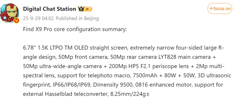 Čínský insider Digital Chat Station odhalil technické parametry a hlavní vlastnosti nového vlajkového modelu Oppo Find X9 Pro.