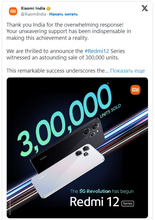 Redmi 12 4G a 5G se v Indii začaly prodávat minulý týden. Společnost Xiaomi India tvrdí, že se jí podařilo prodat 300 000 kusů během prvního dne prodeje. Tržby společnosti činily přibližně 36 milionů dolarů.