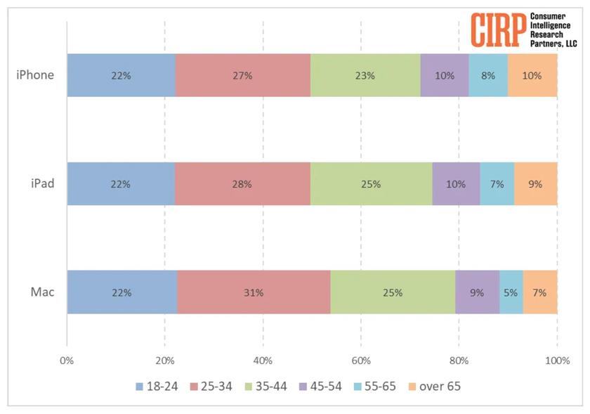 Společnost CIRP, která se specializuje na průzkum trhu, se rozhodla zjistit, v jakém věku mají lidé největší zájem o produkty Apple.