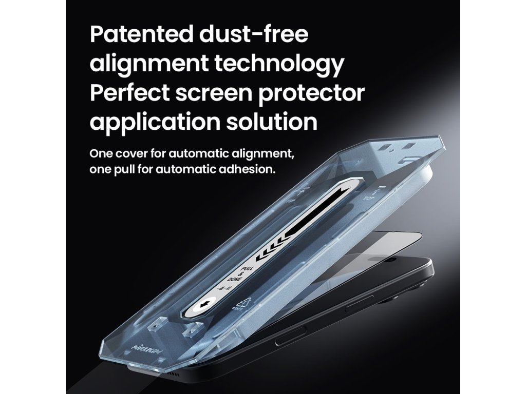 Díky němu můžete snadno nainstalovat tvrzené sklo na displej bez rizika špatného umístění nebo tvorby vzduchových bublin.