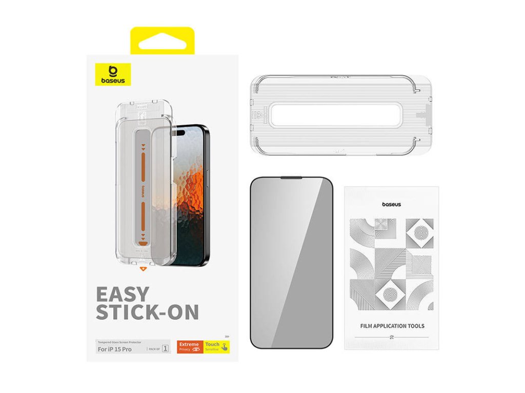Tvrzené sklo Baseus Sapphire iPhone 15 Pro pro ochranu soukromí.
