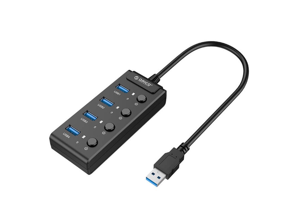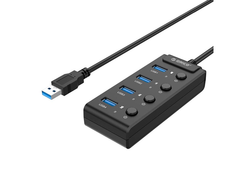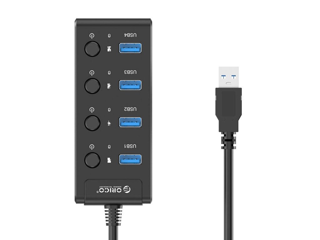 Orico USB 3.0. Rozbočovač s přepínači, 4x USB (černý)